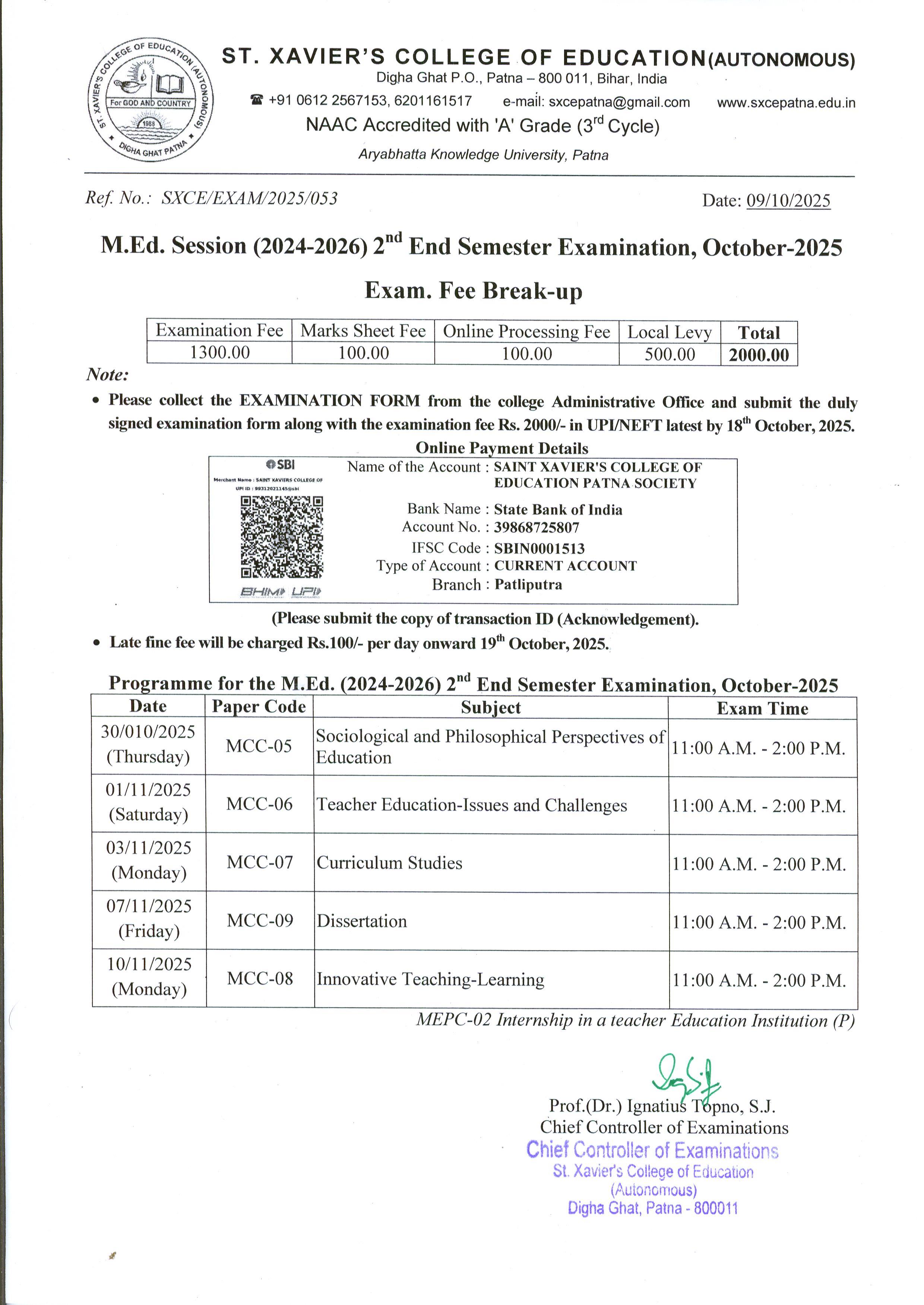 End Semester Examination Programme (October, 2025)